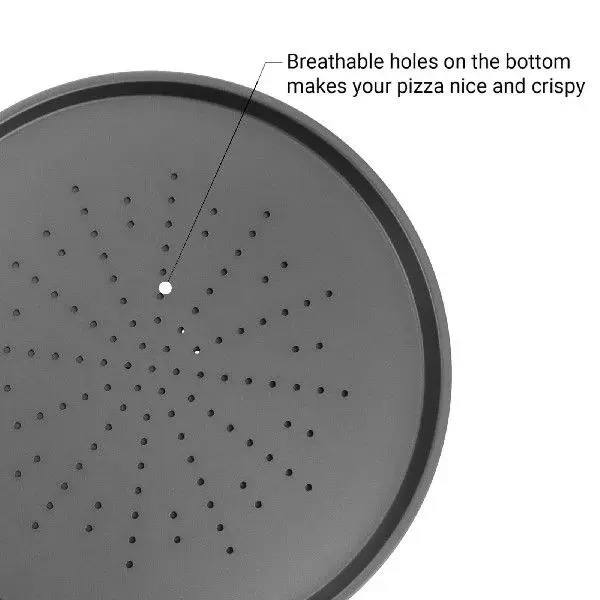 صينية بيتزا مخرمة أصلية مصممة للحصول على أفضل تسوية للبيتزا بفضل الثقوب الدقيقة التي تساعد على توزيع الحرارة بشكل متساوٍ لضمان قاعدة مقرمشة وطهي مثالي مصنوعة من خامة عالية الجودة تتحمل درجات الحرارة المرتفعة وتضمن أداءً ممتازًا مع كل استخدام