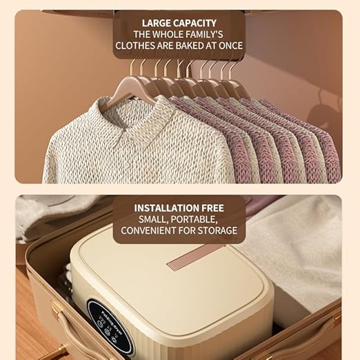 سهولة الاستخدام: يمكنك ببساطة وضع الملابس داخل الكيس، توصيل الجهاز بالكهرباء، والانتظار حتى تجف.
