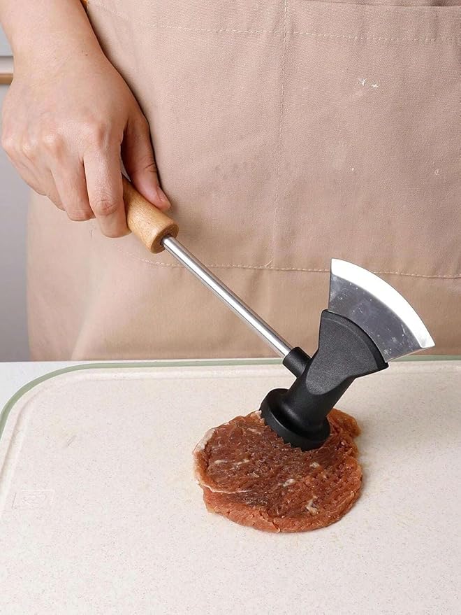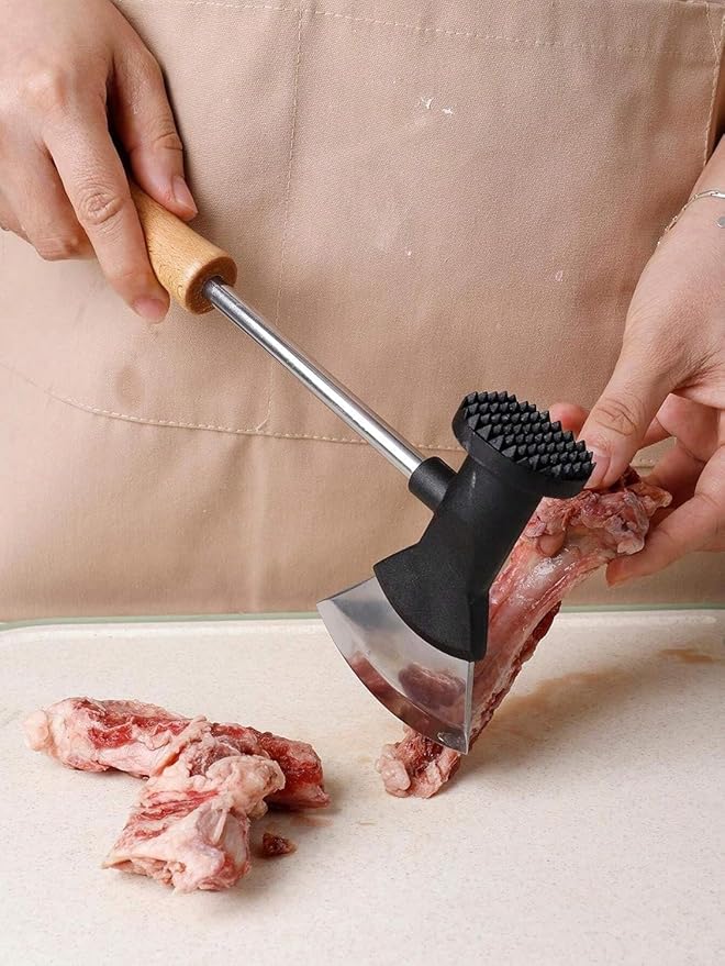 تصميم متعدد الاستخدامات يجمع بين ساطور لتقطيع اللحوم والخضروات و مطرقة لحم لتطرية اللحوم في أداة واحدة عملية