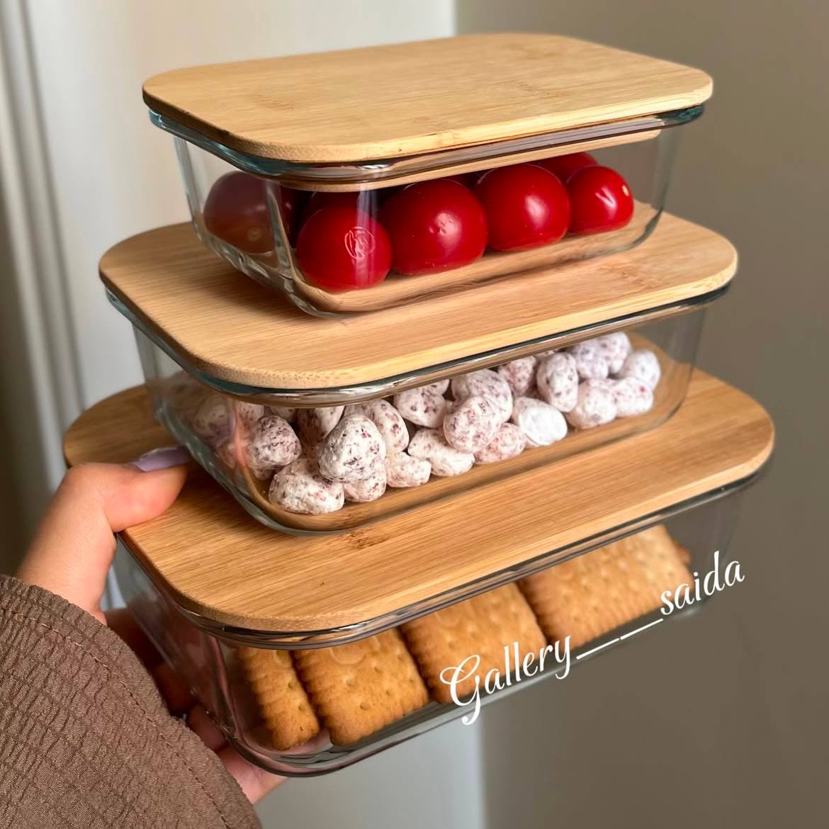 علب ثلاجة بيركس بغطاء بامبو 3 قطع