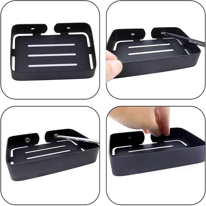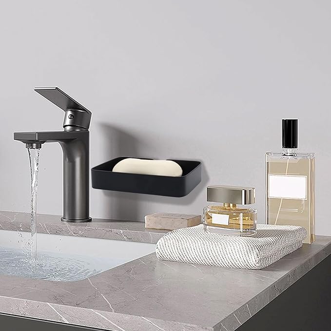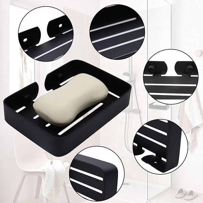 تصميم أنيق وعصري: حامل صابون من الستانلس ستيل بتشطيب أسود أنيق يتناسق مع معظم ديكورات الحمام، ويضيف لمسة عصرية على المكان.