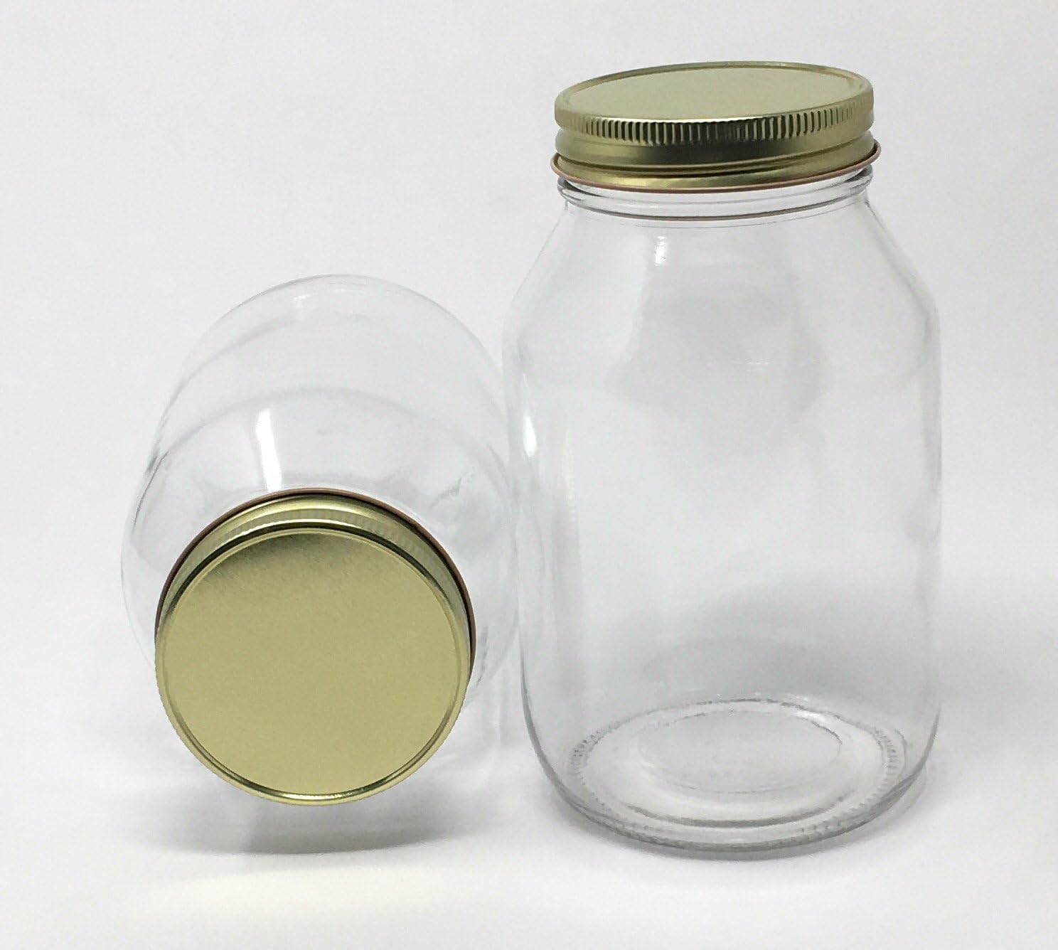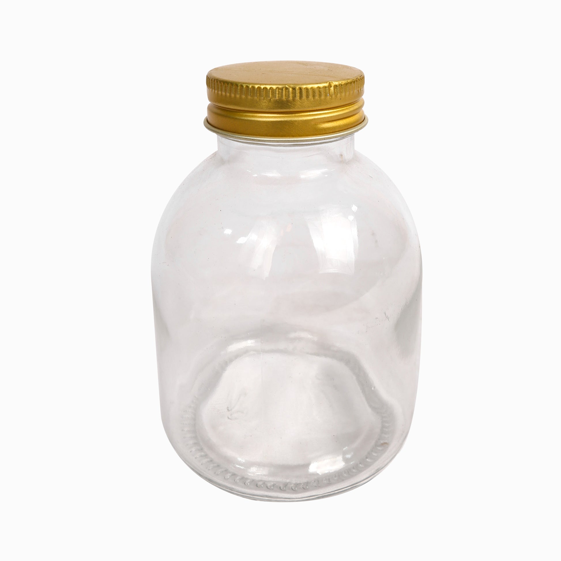 برطمان زجاجي دائري قديم الطراز مع غطاء معدني ذهبي