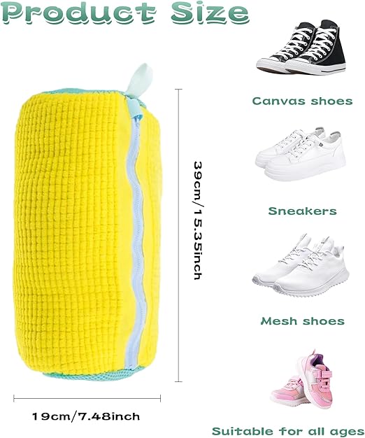 شنطة غسيل أحذية ، مصنوعة من ميكروفايبر شينيل، لون أصفر، قطعة واحدة، مزودة بسحاب للإغلاق، حقيبة غسيل للأحذية مناسبة للغسالة، قابلة لإعادة الاستخدام، ومناسبة لمعظم أنواع الأحذية.