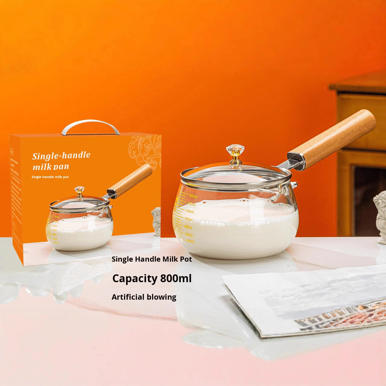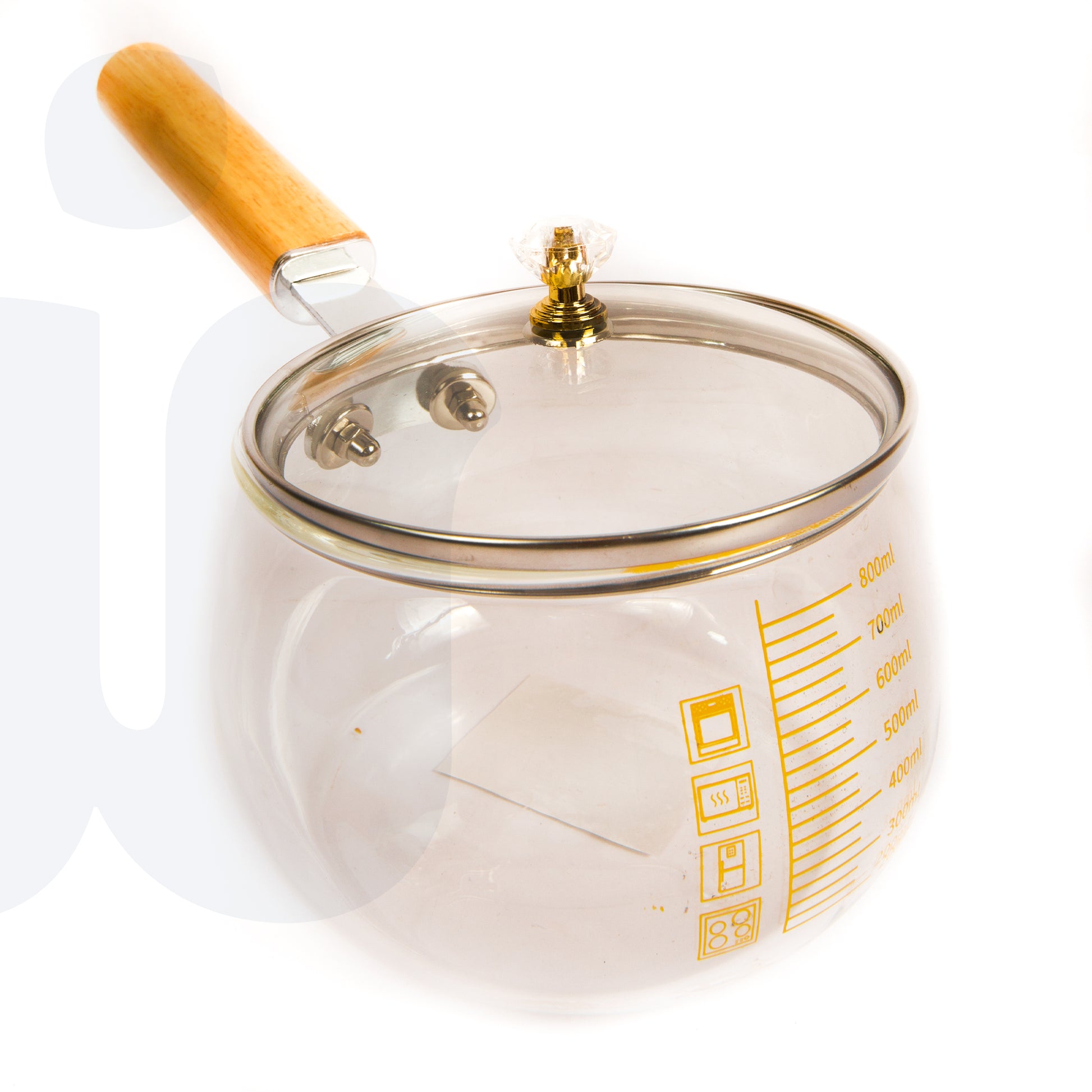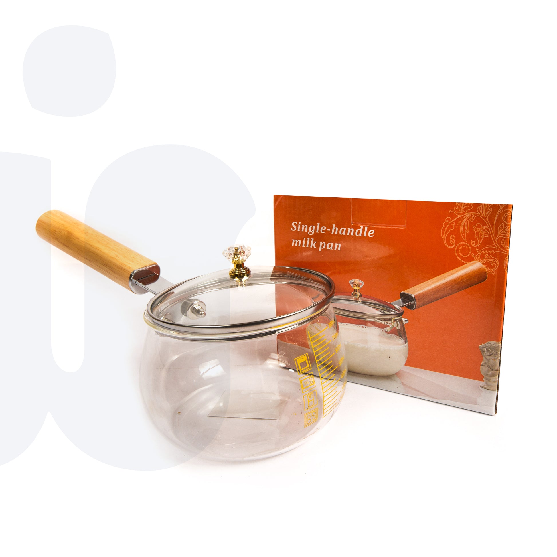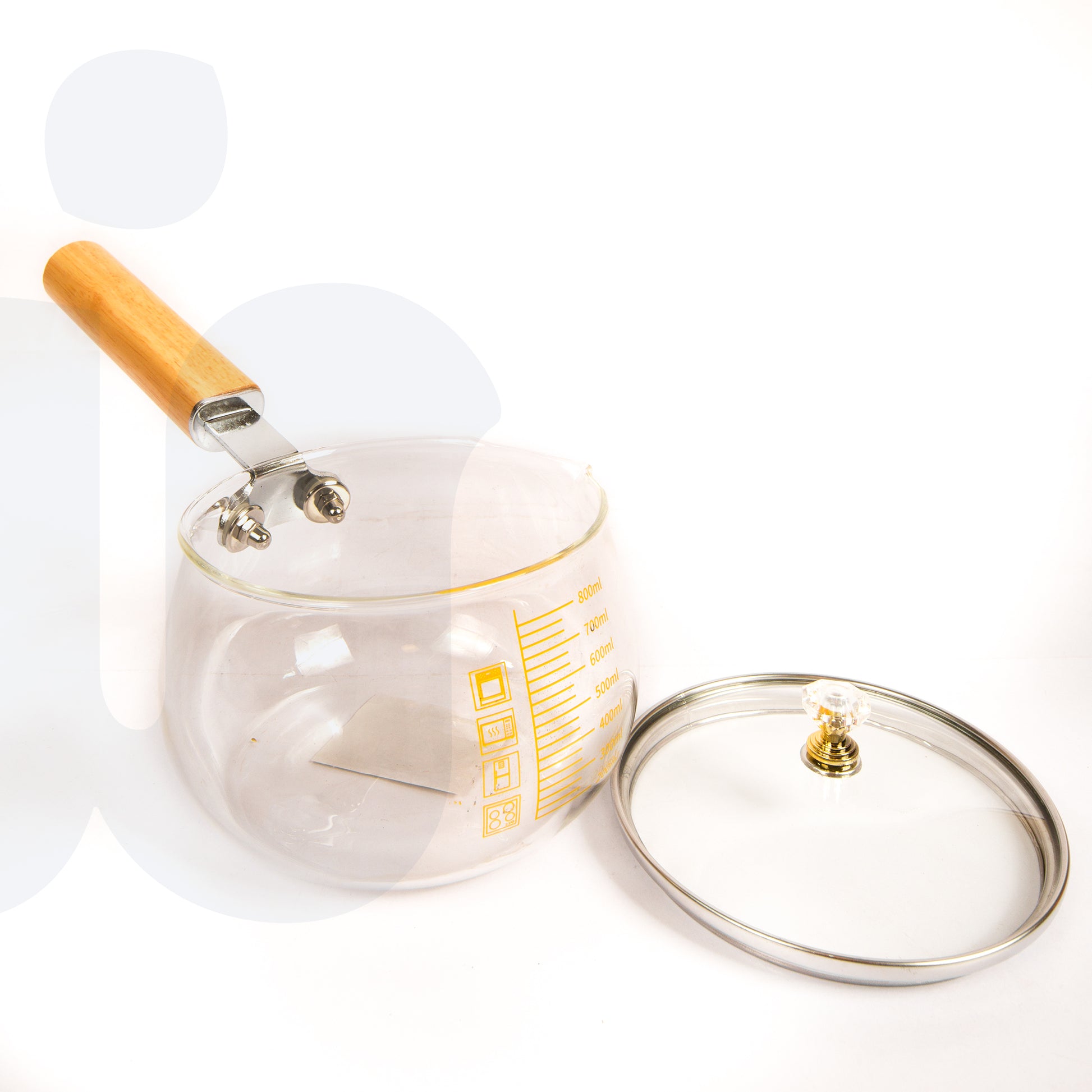 قدر حليب زجاجي بمقبض واحد – غطاء بمقبض خشبي