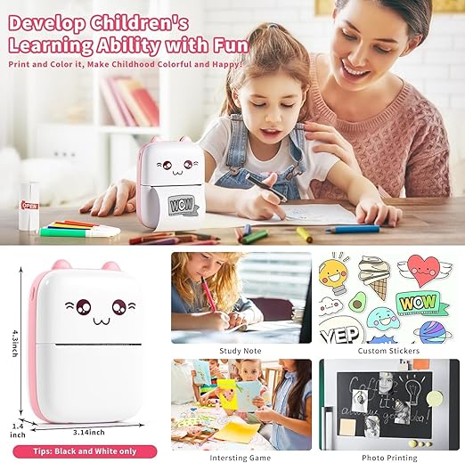 محمولة جدًا: حجمها الصغير يسمح لك بوضعها في جيبك أو حقيبتك، مما يجعلها مثالية للسفر.متعددة الاستخدامات: يمكنك استخدامها لطباعة الصور الصغيرة، المذكرات، قوائم المهام، والملصقات.مثالية كهدية: تصميمها الجذاب والعملي يجعلها هدية رائعة للأطفال والأصدقاء