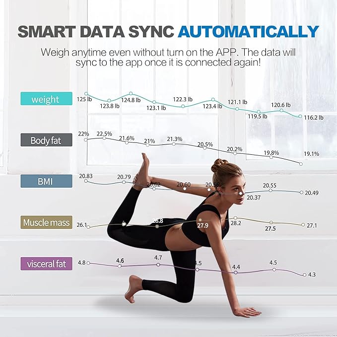 تتبع صحتك ولياقتك البدنية بشكل شامل مع هذا الميزان الذكي. بفضل اتصاله بالبلوتوث وتصميمه المبتكر، يمكنك الآن قياس وزنك ومؤشرات جسمك المختلفة، ومزامنتها مع هاتفك لتتبع تقدمك.