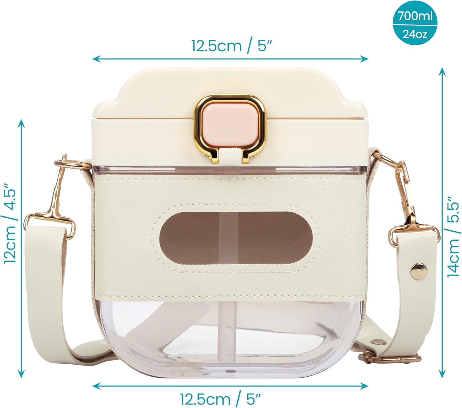 زجاجة مياه مربعة بسعة 700 مل مع حزام قابل للتعديل وشفّاطة – تصميم عملي وأنيق مانع للتسريب