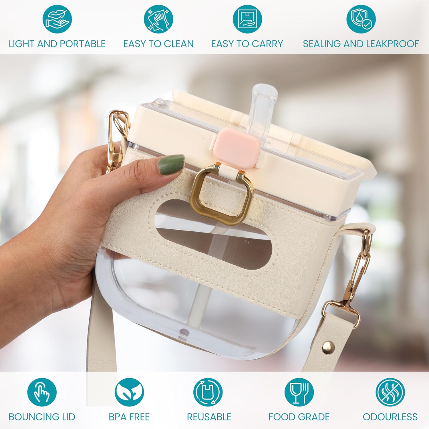زجاجة مياه عملية بتصميم مربع عصري تجمع بين الأناقة والراحة في الاستخدام اليومي. مصنوعة من بلاستيك عالي الجودة خالٍ من مادة الـ BPA، مما يجعلها آمنة وصحية. تحتوي على شفّاطة مدمجة لتسهيل الشرب أثناء التنقل، بالإضافة إلى حزام حمل قابل للتعديل يجعلها مثالية للسفر، المدرسة، الجيم أو المكتب. مانعة للتسريب وسهلة التنظيف لتناسب أسلوب حياتك النشط.