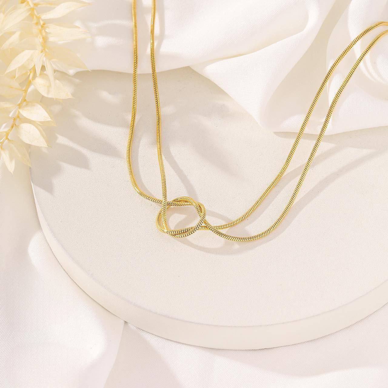 سلسلة شوكر أنيقة بتصميم عقدة ملتوية تضفي لمسة فخمة وعصرية على إطلالتك. مصنوعة من الستانلس ستيل المطلي بالذهب، مما يمنحها لمعانًا راقيًا ومتانة عالية مقاومة للصدأ والتغير في اللون. تصميمها البسيط يجعلها قطعة مثالية للتنسيق مع مختلف الإطلالات اليومية أو الرسمية.