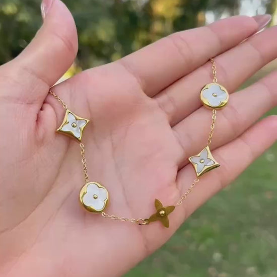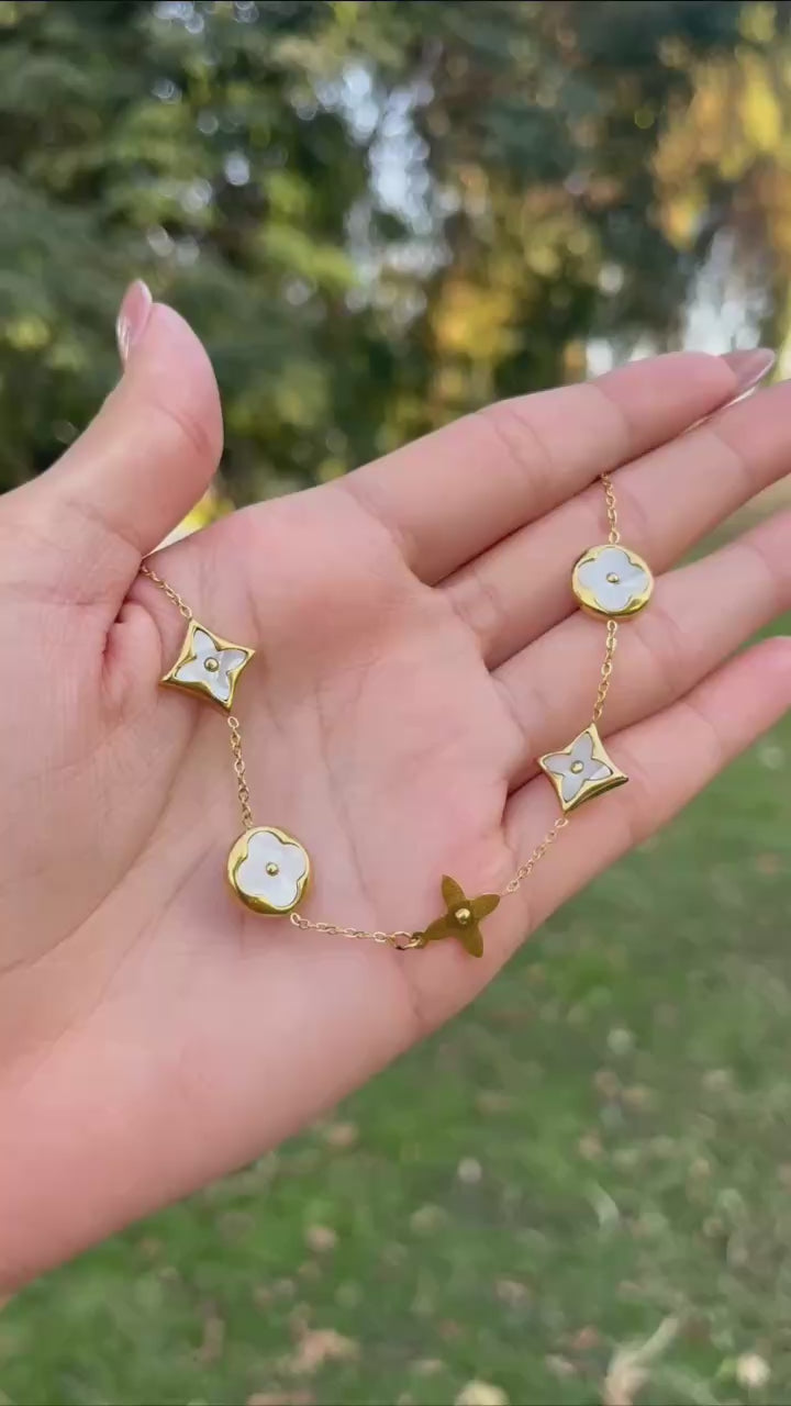 إسورة مطلية بالذهب من الستانلس ستيل مزينة بزهور بيضاء