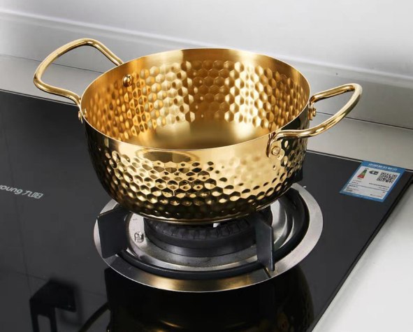 سوتيز عثماني ذهبي أنيق يجمع بين الشياكة والعملية في منتج واحد. تصميمه العصري يشبه الحلة أو الصينية المزودة بيدين لسهولة الحمل والاستخدام. مصنوع من خامة عالية الجودة توزع الحرارة بالتساوي، مما يجعله مثاليًا للقلي، والشوي، والتحمير. قطعة متعددة الاستخدامات لا غنى عنها في أي مطبخ عصري.