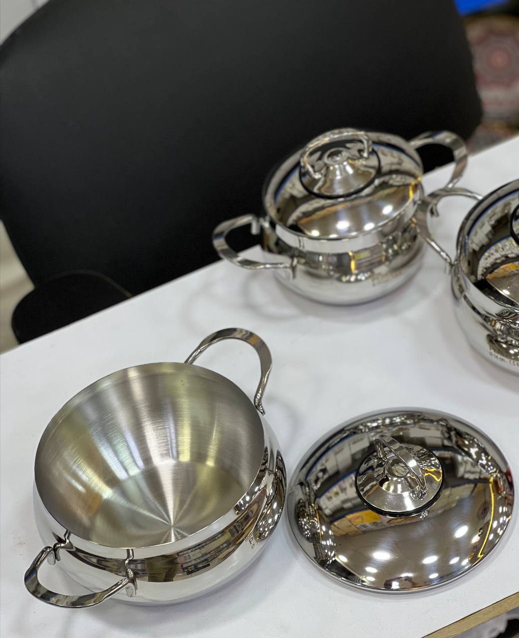 طقم حلل تركي مصنوع من الستانلس ستيل عالي الجودة يتميز بالقوة والمتانة ومقاوم للصدأ مصمم لتوزيع الحرارة بشكل متساوٍ لطهي صحي وسريع ومثالي للاستخدام اليومي في المطبخ
