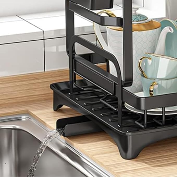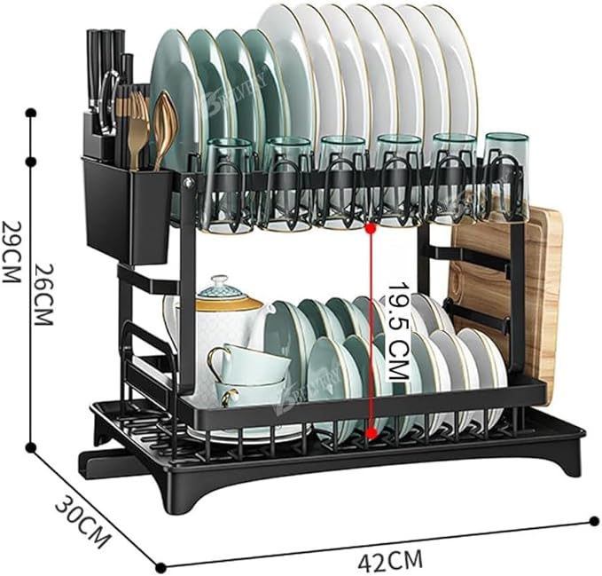 تصميم بطابقين: يوفر مساحة تخزين مضاعفة، مما يسمح لك بتجفيف عدد أكبر من الأطباق في نفس الوقت دون أن تشغل مساحة كبيرة على سطح المطبخ.