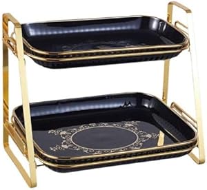 صينية تقديم بطبقتين مع مقابض ذهبية - لمسة من الرقي والأناقة