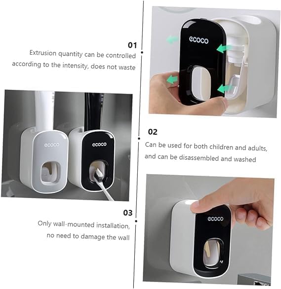 حامل ومعصور معجون أسنان جداري للأطفال والكبار – موزع أوتوماتيكي لمعجون الأسنان مع حامل فرشاة أسنان