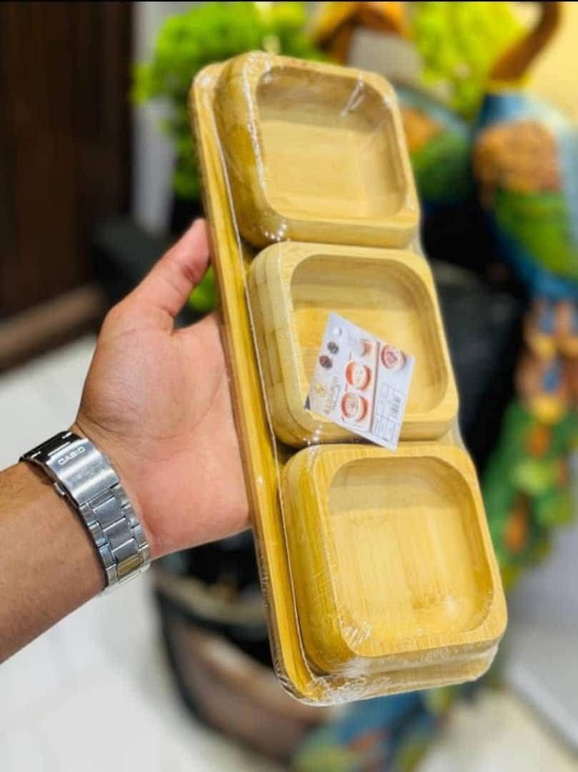 استمتعي بتقديم المكسرات والتسالي والشوكولاتة بشكل أنيق مع طقم التسالي 3×1 المصنوع من خشب طبيعي متين داخل الأورديف، مع أوعية تقديم عملية تضيف لمسة راقية لسفرة الضيافة. مناسب للعزومات والاستخدام اليومي ويكمل ديكور الطاولة بشكل جميل.