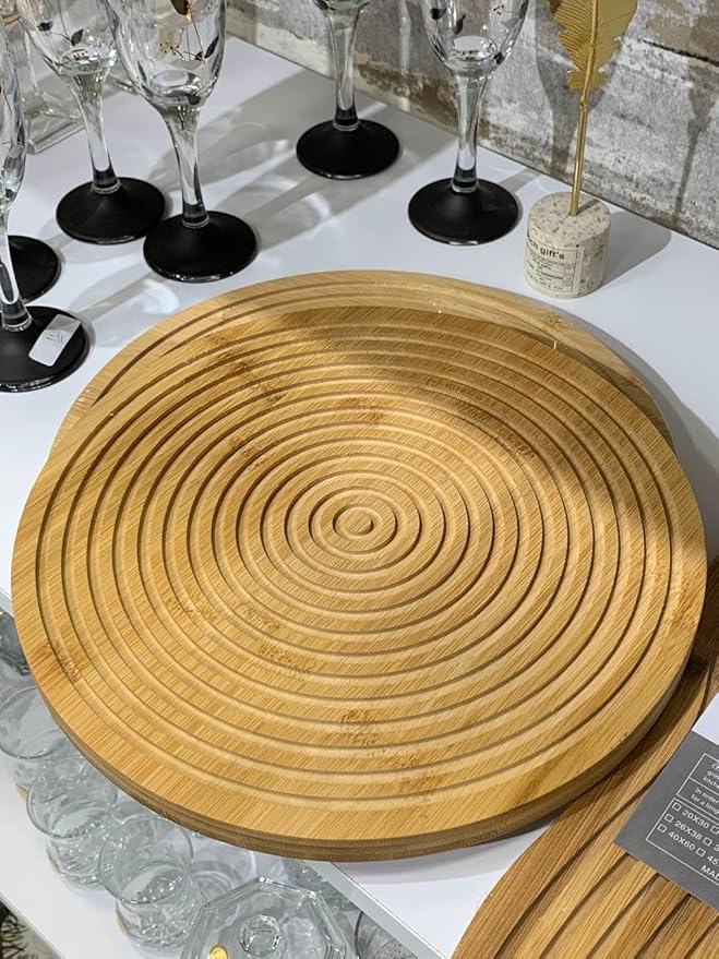 تصميم مخدد (Grooved): تتميز الصينية بتفاصيل مخددة أنيقة، والتي لا تضفي عليها مظهرًا جماليًا فحسب، بل تساعد أيضًا على منع انزلاق الأكواب أو الأطباق.