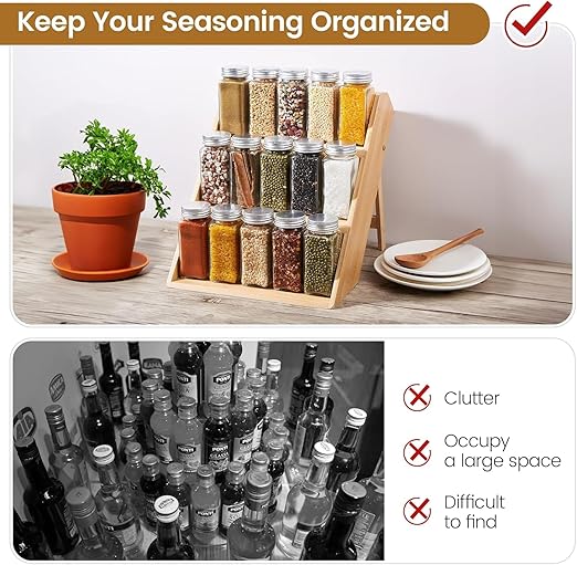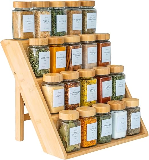 ودّع فوضى البهارات واستمتع بمطبخ منظم مع منظم البهارات هذا المصنوع من خشب البامبو الطبيعي. بتصميمه العملي والأنيق، سيساعدك على ترتيب جميع توابلك وتسهيل الوصول إليها أثناء الطهي.